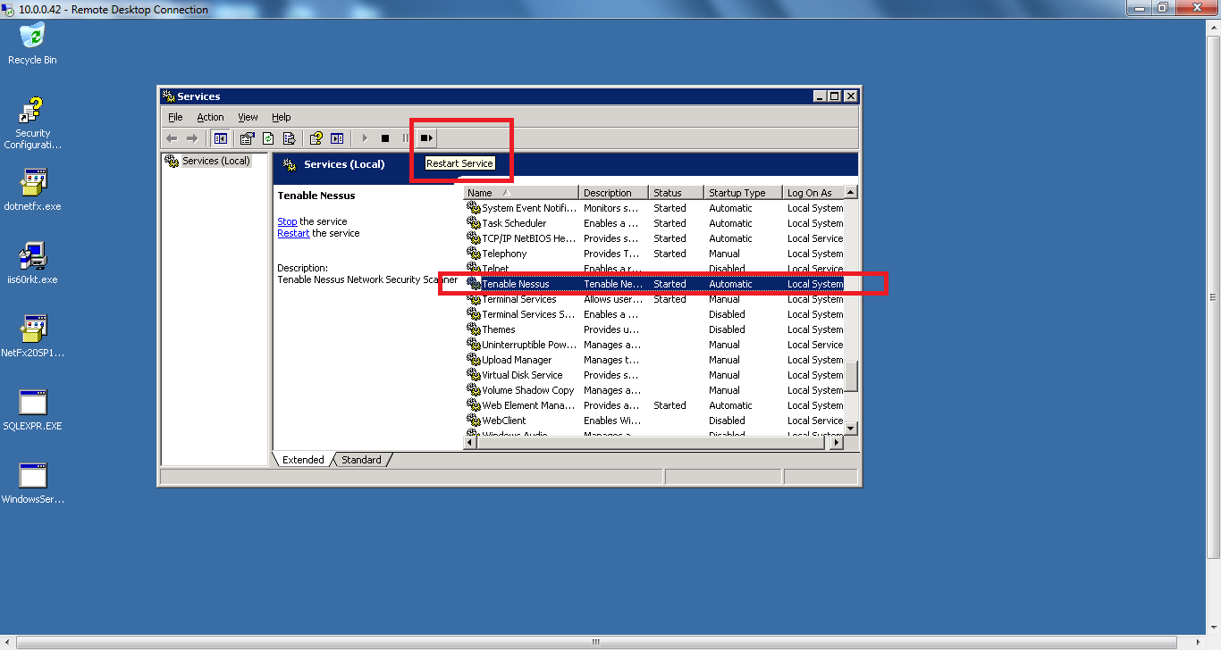 2- Nessus sunucunuzda çalışmakta olan Tenable Nessus Servisini restart edin. (Restart tenable nessus service)